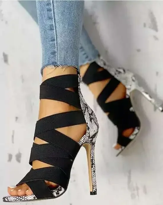 Women’s Fashion High Heel Sandals – Snake Print with Back Zipper